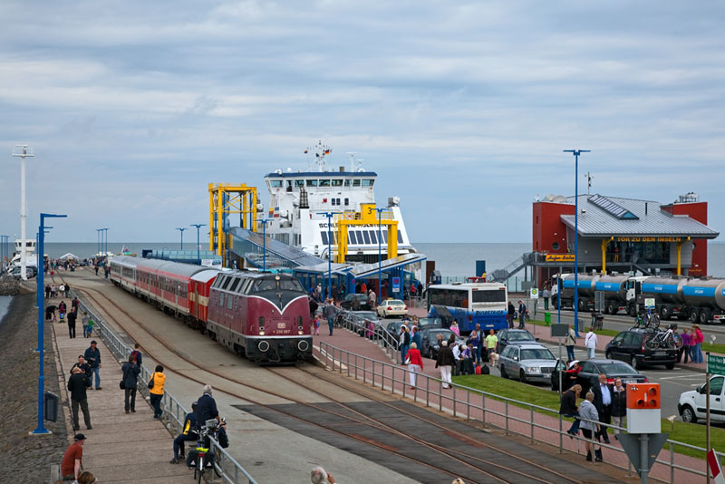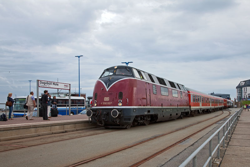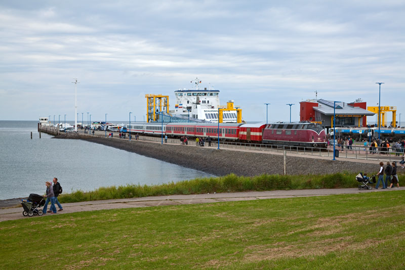 | Die wartenden Reisenden des Gegenzuges staunten nicht schlecht. Dagebüll Mole, 29. Juli 2012 |