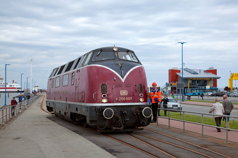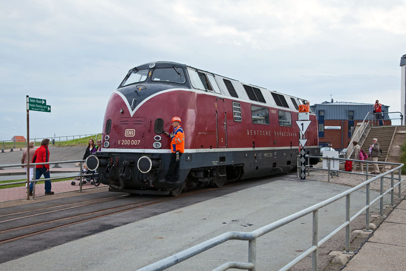 | Die V 200 setzt um – ihre Motoren brummen souverän. Dagebüll Mole, 29. Juli 2012 |
