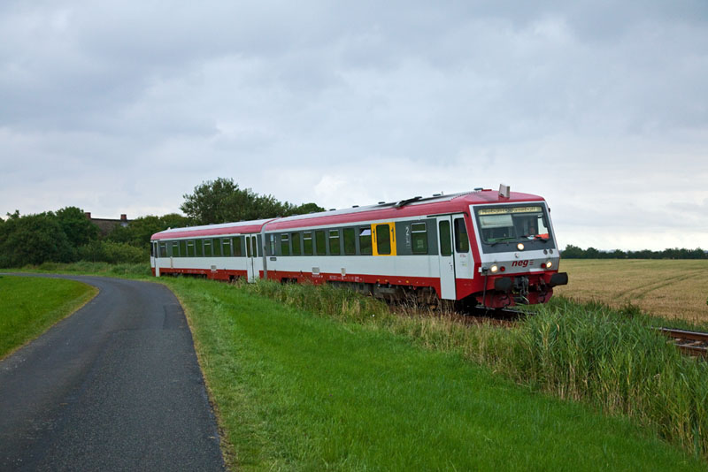 | Der 628/629er der NEG alias VT71 als Zug 19 von Niebüll nach Dagebüll. Blocksberg, 29. Juli 2012 |