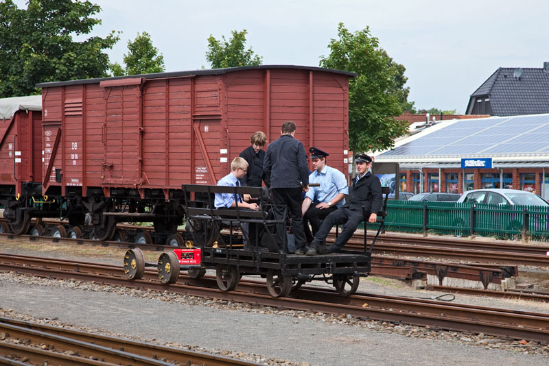 | Die Handhebeldraisine 181 mit Biernachschub. Bruchhausen-Vilsen, 4. August 2012 |