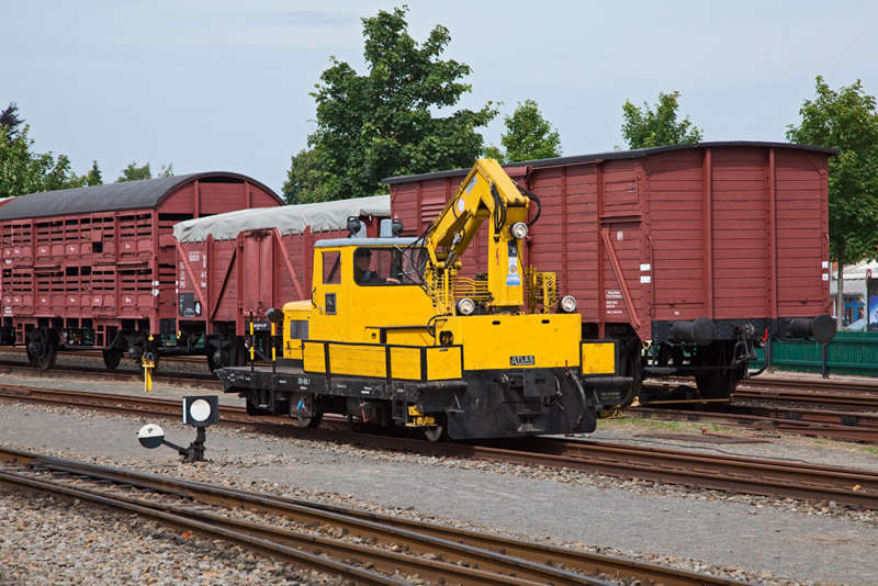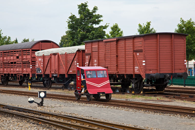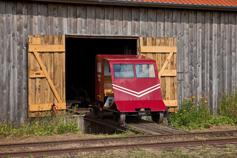 | Die Motordraisine stand vor ihrem Schuppen – schnell konnte man diese Gefährte auf das Gleis setzen. Heiligenberg, 4. August 2012 |