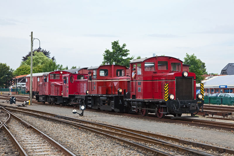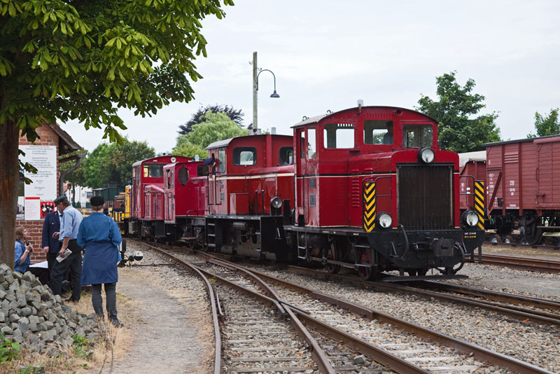 | Alle vier Dieselloks: V1, V3, V4 und V29. Bruchhausen-Vilsen, 4. August 2012 |