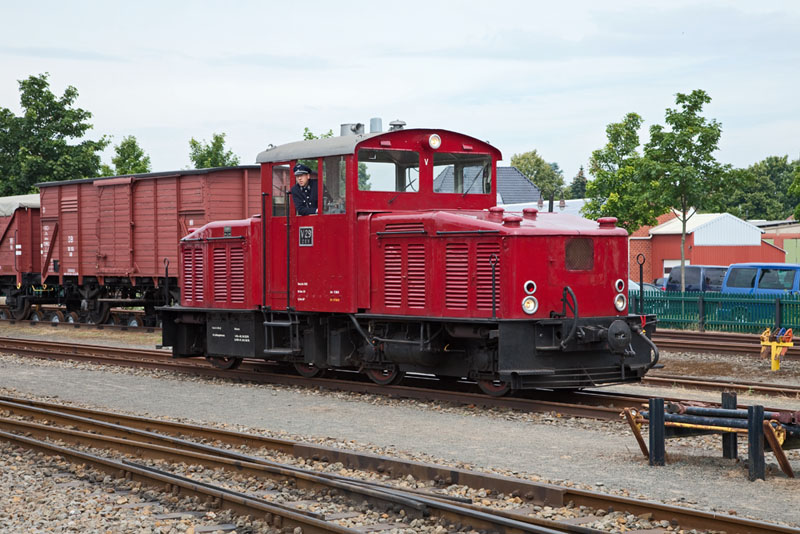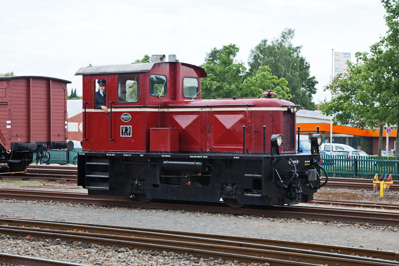 | Die urige V1 der ehemaligen Rendsburger Kreisbahn. Bruchhausen-Vilsen, 4. August 2012 |
