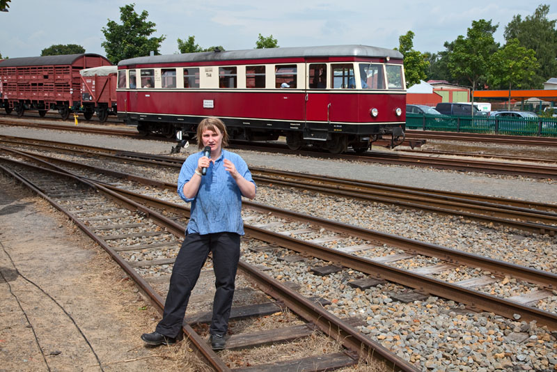 | Die nette Dame moderierte alle Fahrzeugen mit Charme und Fachwissen. Bruchhausen-Vilsen, 4. August 2012 |