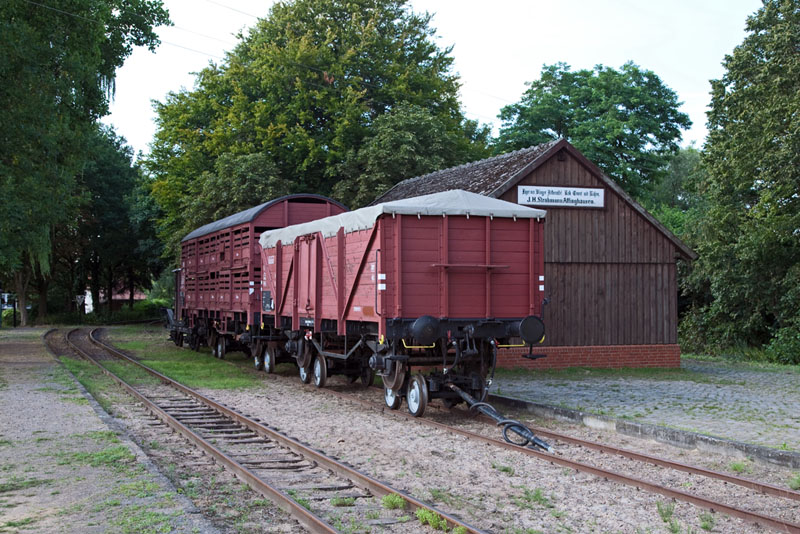 | Zwei Normalspur-Güterwagen auf Rollböcken. Heiligenberg, 4. August 2012 |