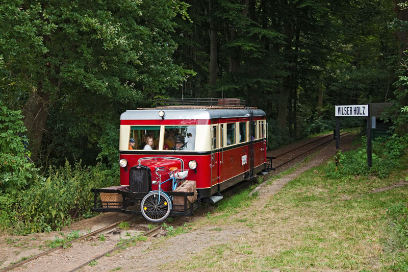 | Der Talbot-Triebwagen T44 hatte auch gleich eine Leistung als T623 nach Asendorf. Vilser Holz, 4. August 2012 |