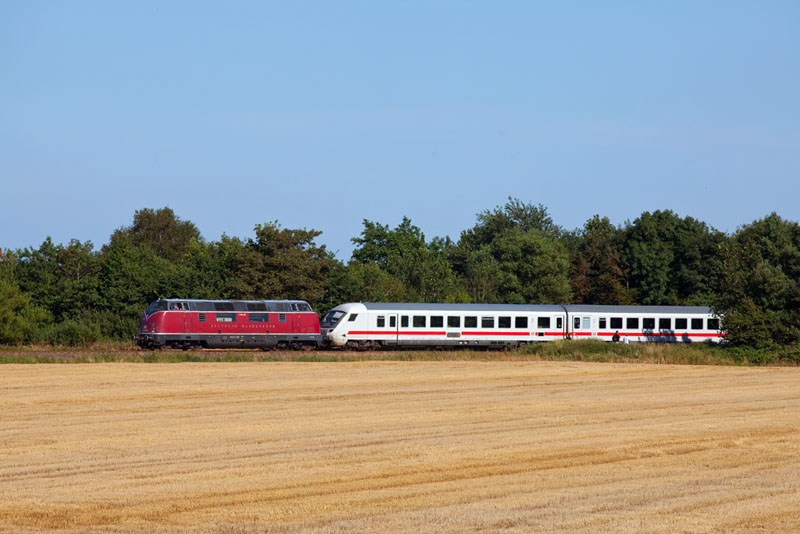 | Zum Schluß kam die V 200 007 noch zu "InterCity-Ehren" – der "IC 22" nach Niebüll. Moorhäuser, 12. August 2012 |