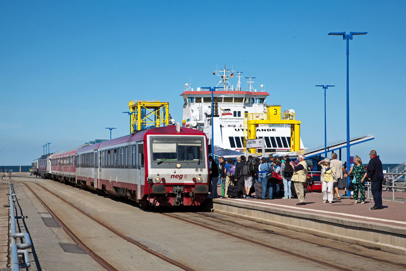 | Der neg VT71 wird sogleich als Zug nach Niebüll zurückkehren. Dagebüll Mole, 12. August 2012 |