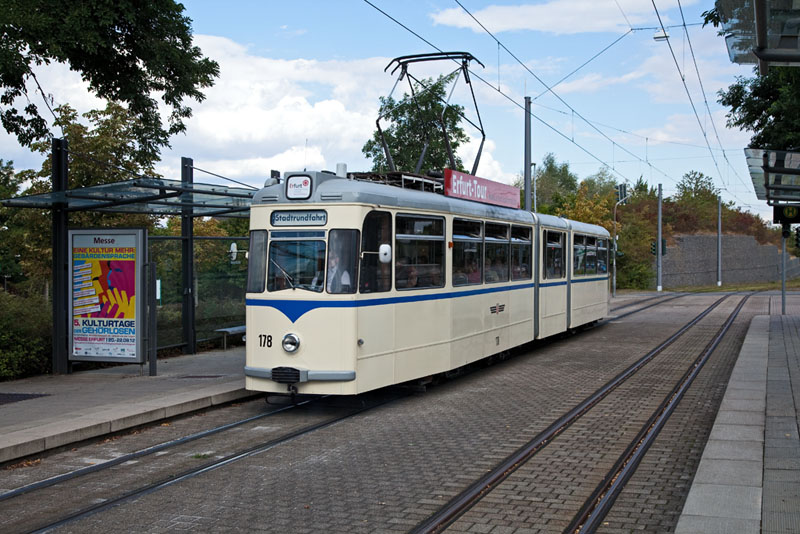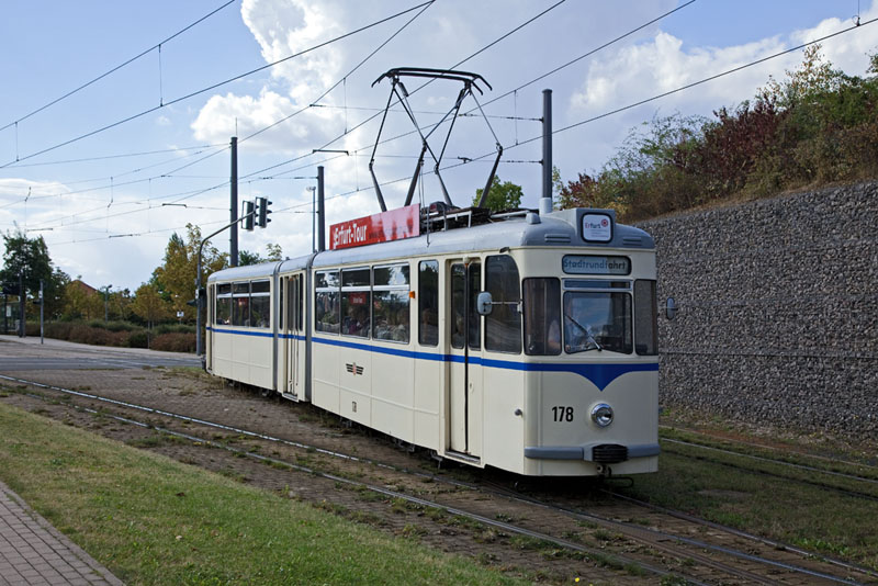 | Wenig später kam der historische Tw 178 auf Stadtrundfahrt stadteinwärts wieder zurück. Messe Erfurt, 19. September 2012 |