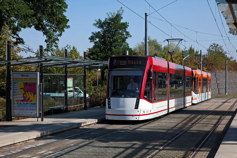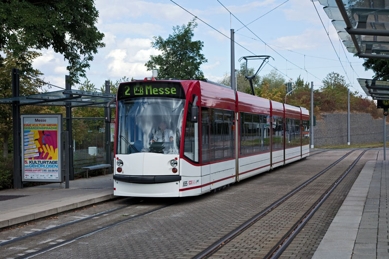 | Tw 655, ein COMBINO Advanced, in der Messehaltestelle. Messe Erfurt, 19. September 2012 |