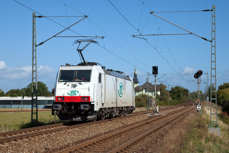 | Die E 186 138 der ITL hat wohl einen Zug hereingebracht und fuhr Lz wieder raus. Hamburg-Hohe Schaar, 9. Oktober 2012 |