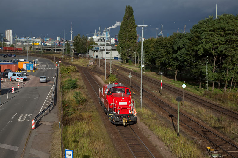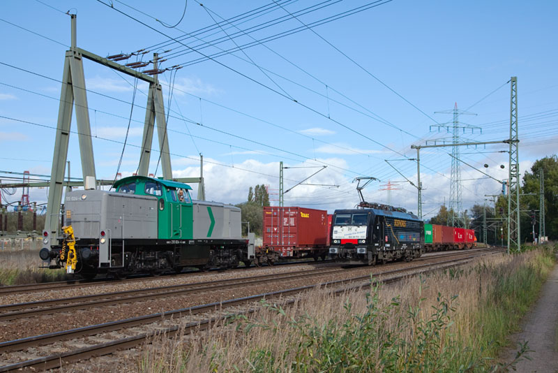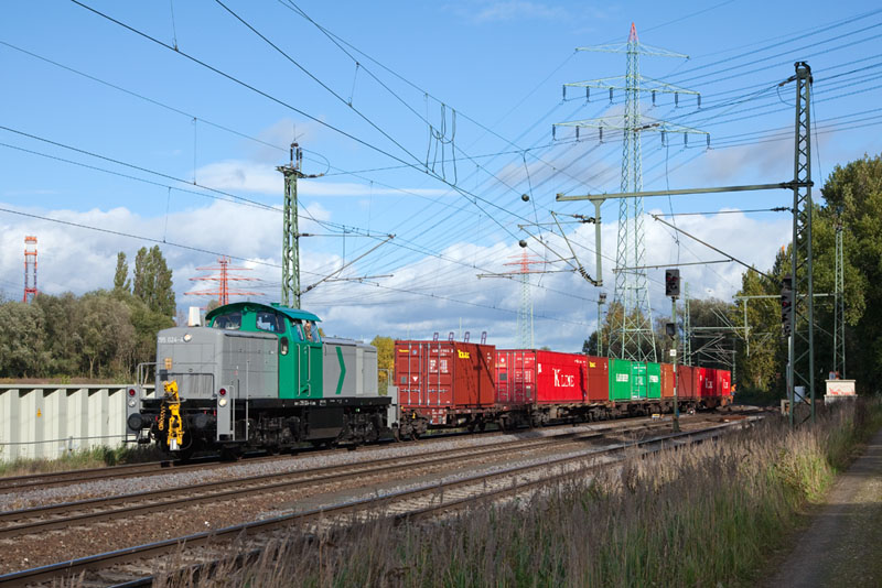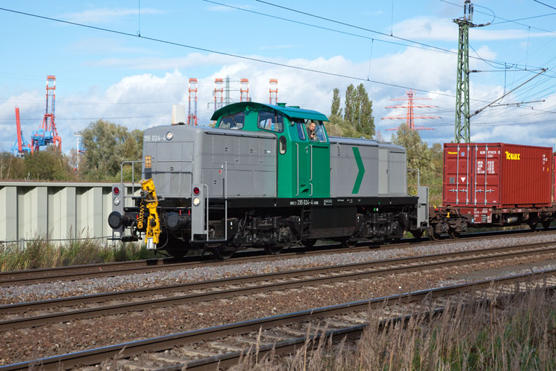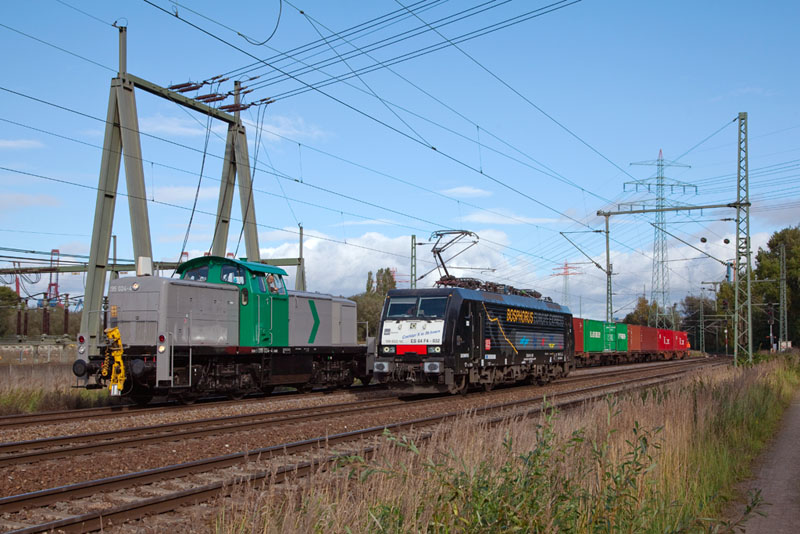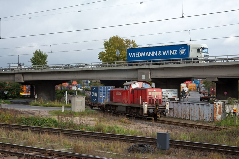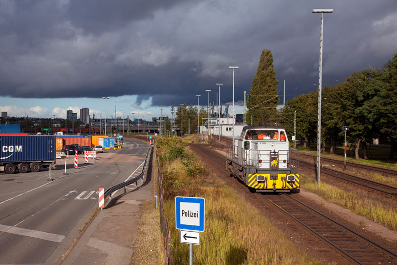 | Den sie später zu den anderen Containerzügen "hinschubste". Hamburg-Waltershof, 10. Oktober 2012 |