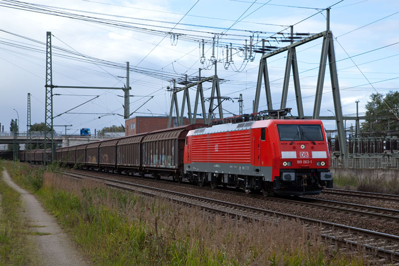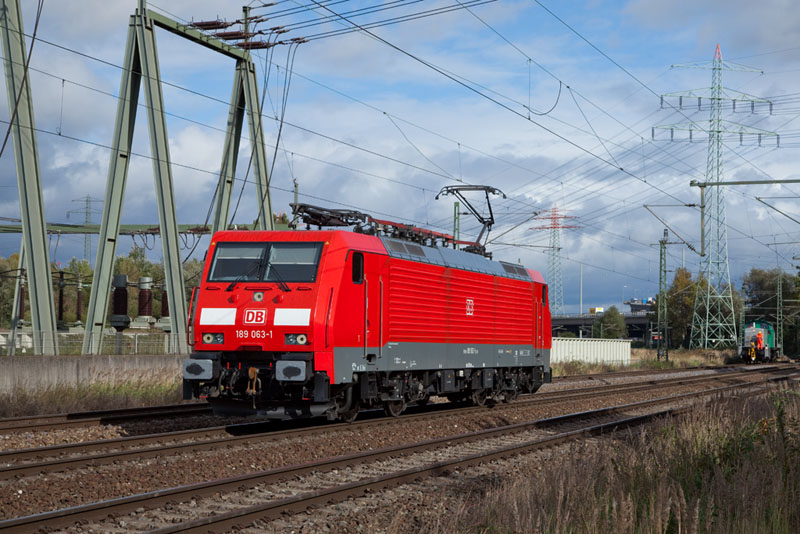 | Nachdem die 189 063-1 ihren Zug abgeliefert hat, rollte sie Lz zurück. Hamburg-Waltershof, 10. Oktober 2012 |