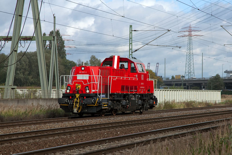 | Eine der jüngsten Gravitas, die 261 092-1 im Rangierdienst an den Containerterminals. Hamburg-Waltershof, 10. Oktober 2012 |