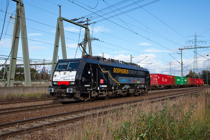 | Die schicke ES 64 F4-032 der MRCE mit der Beklebung für den "Bosporus Europe Express". Hamburg-Waltershof, 10. Oktober 2012 |