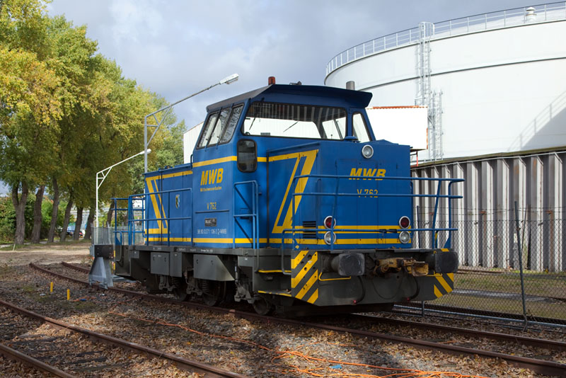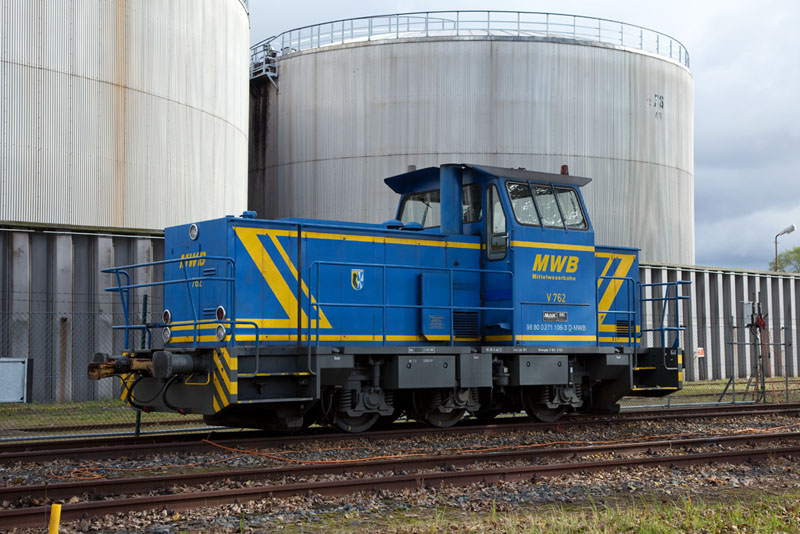 | Die V 762 der Mittelweserbahn bei ihrer Pause bei Bominflot. Hamburg-Waltershof, 10. Oktober 2012 |