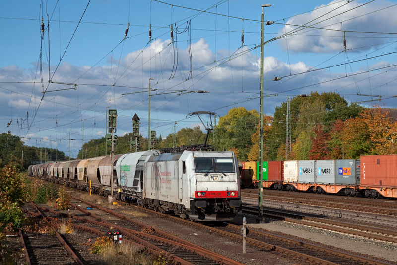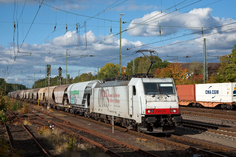 | Die E 186 239 der CRS hatte einen Cerealienzug aus Bremen am Haken. Verden (Aller), 11. Oktober 2012 |