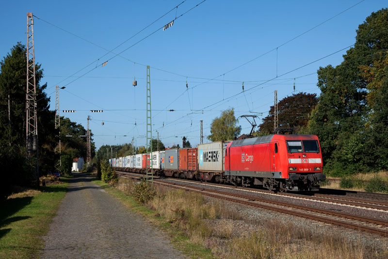 | Mit einem Containerzug von Bremerhaven kam die 145 009-7. Langwedel, 11. Oktober 2012 |