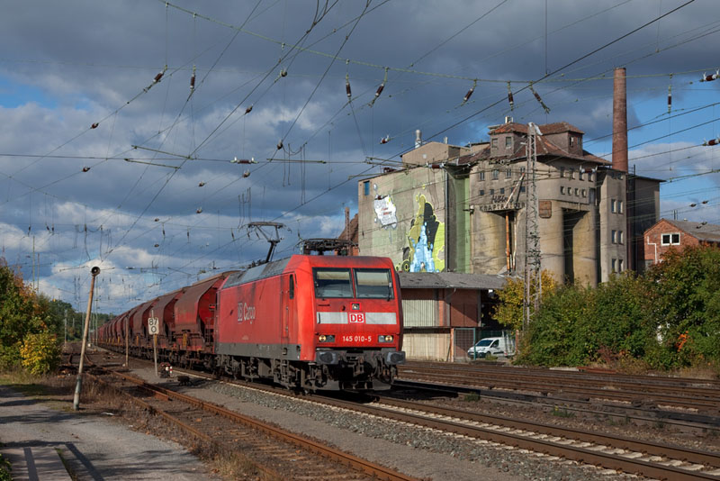 | Einen Kalisalzzug brachte die ausgeblichene 145 010-5 in den Süden. Verden (Aller), 11. Oktober 2012 |