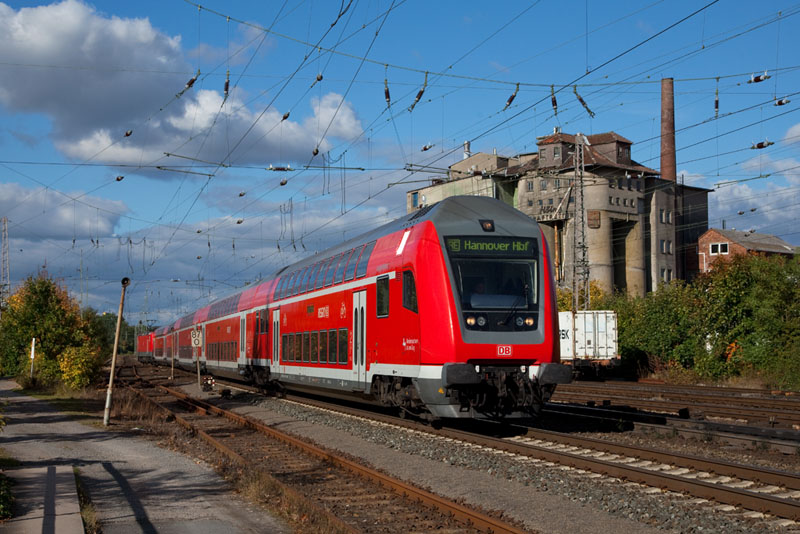 | Ein doppelstöckiger RE nach Hannover, geschoben von einer 143 (143 651-8)! Verden (Aller), 11. Oktober 2012 |