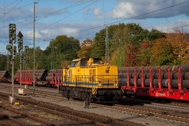 | Leonhard Weiss LW 203 002 fuhr gen Süden, als nordwärts ein Röhrenzug durchdonnerte. Verden (Aller), 11. Oktober 2012 |
