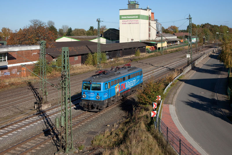 | Meister "Yoda" kommt, die 241.010 mit dem LKW WALTER-Zug von Schweden. Tostedt, 28. Oktober 2012 |