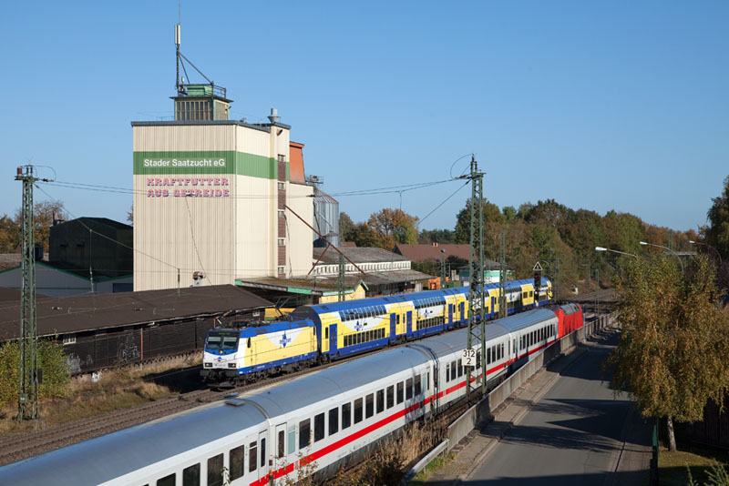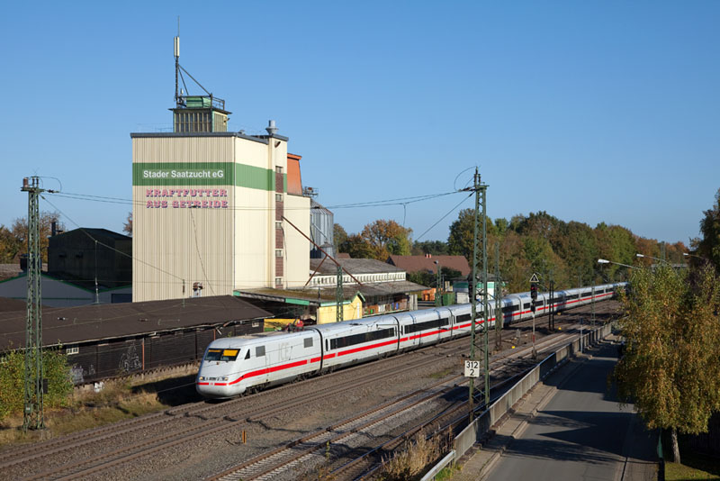 | Der via Verden (Aller) umgeleitete ICE 577 mit dem Triebzug 117 nach Hannover. Tostedt, 28. Oktober 2012 |