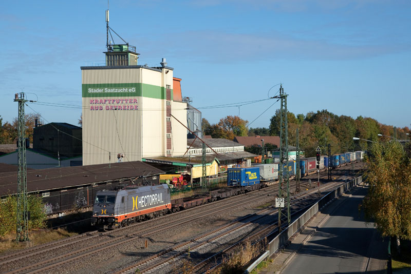 | Merkwürdigerweise müssen die immer auf dem durchgehenden Gleis Bremen - Hamburg umsetzen und blockieren so dieses Gleis. Tostedt, 28. Oktober 2012 | ||