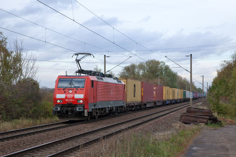 | Die 189 015-1 von DB Schenker mit dem Tschechien-Paket für mit weiteren Containern aus. Hamburg-Moorburg, 2. November 2012 |