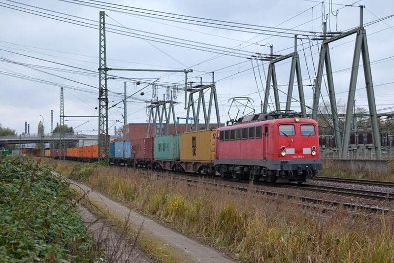 | Na endlich, die 139 285-1 der EGP mit einem Containerzug in den Hafen. Hamburg-Waltershof, 2. November 2012 |