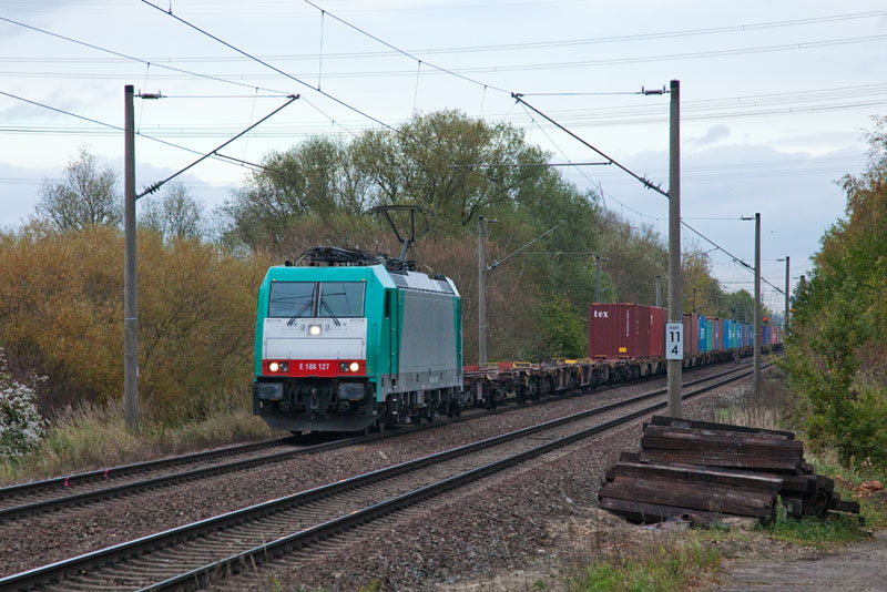 | Auch die E 186 127 der ITL fuhr mit Sicherheit via Bad Schandau nach Tschechien. Hamburg-Moorburg, 2. November 2012 |