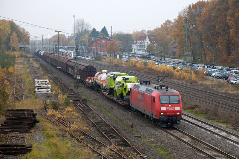 | Nach Maschen ging dieser gemischte Güterzug mit der 145 059-2. Tostedt, 9. November 2012 |