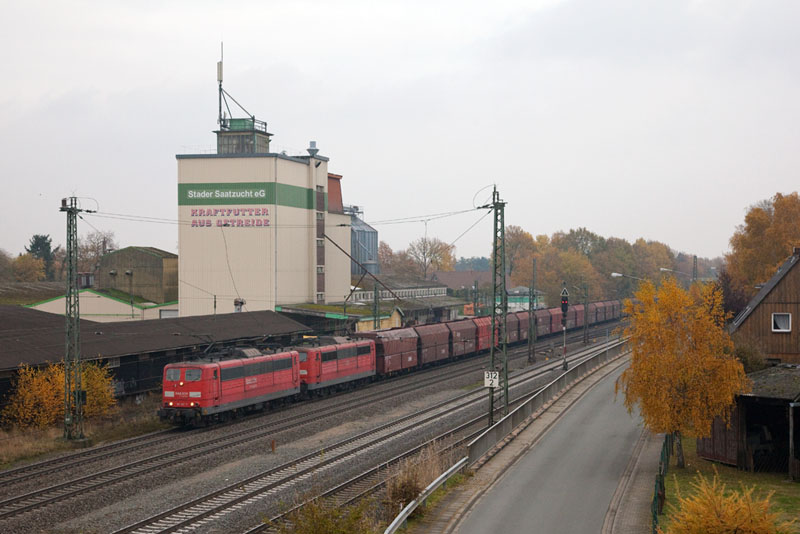 | Schwerlastbewegung in Form der 151 161-7 und 151 103-9 mit einem Kohlepark. Tostedt, 9. November 2012 |