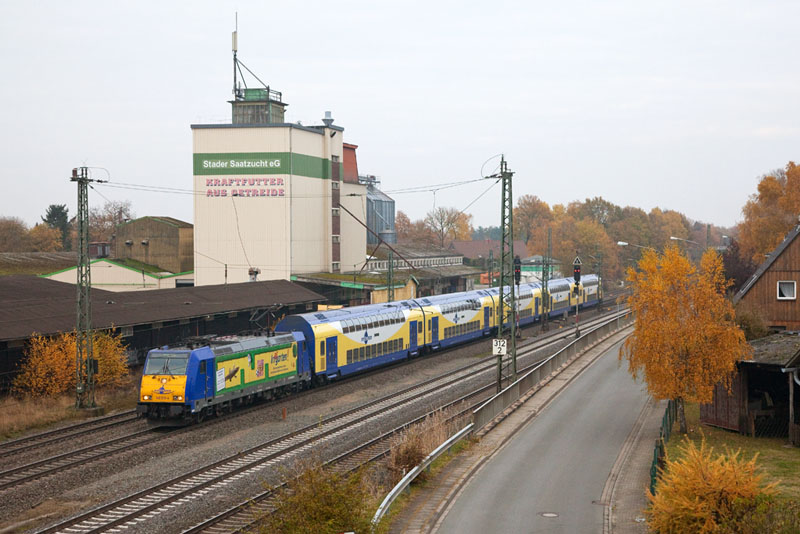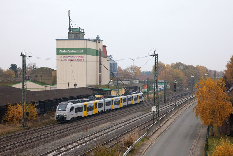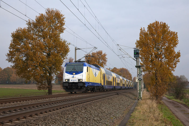 | Ein metronom (ME 82010) nach Bremen mit der ME 146-14. Buensen, 9. November 2012 |