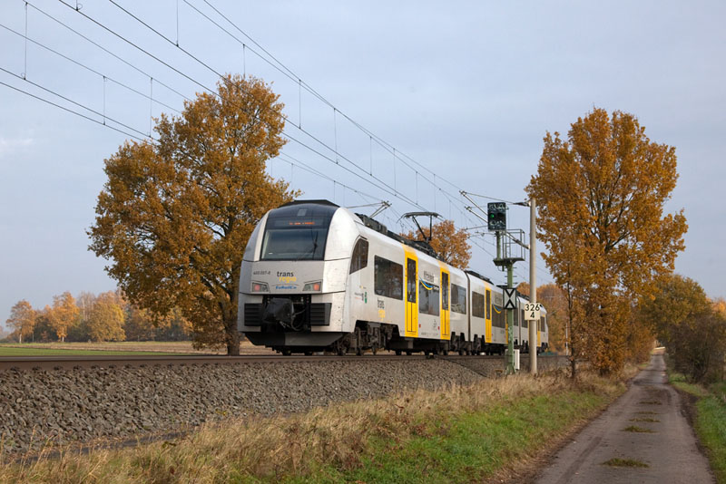 | Der trans regio-Triebzug 460 007 als HKX 1801 von Köln nach Hamburg! Buensen, 9. November 2012 |