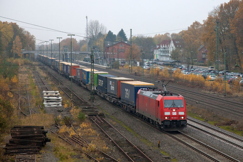 | Einen KLV-Zug von Verona nach Malmö zog die 185 404-1 der TX Logistik (!). Tostedt, 9. November 2012 |