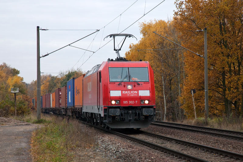 | Im Blockabstand rollten die Containerzüge in den Hafen, hier mit der 185 302-7 von DB Schenker. Hamburg-Moorburg, 10. November 2012 |