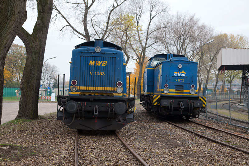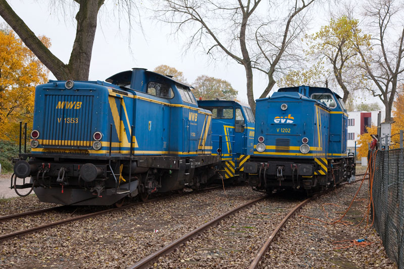 | Pausierende Loks der evb/Mittelweserbahn – die V 1353 hatte noch das alte MWB-Logo… Hamburg-Waltershof, 10. November 2012 |