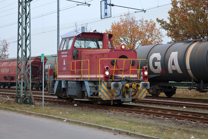 | Die knutschige V 226 der Hamburger Hafenbahn (HPA). Hamburg-Hohe Schaar, 17. November 2012 |
