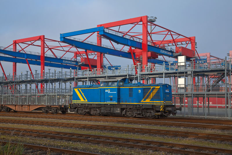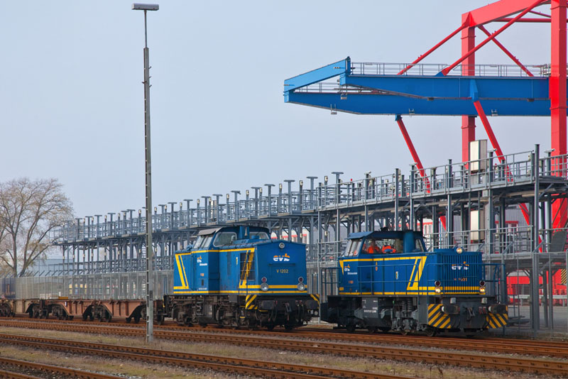 | Auch die V 1202 der evb Mittelweserbahn wartete. Hamburg-Waltershof, 17. November 2012 |
