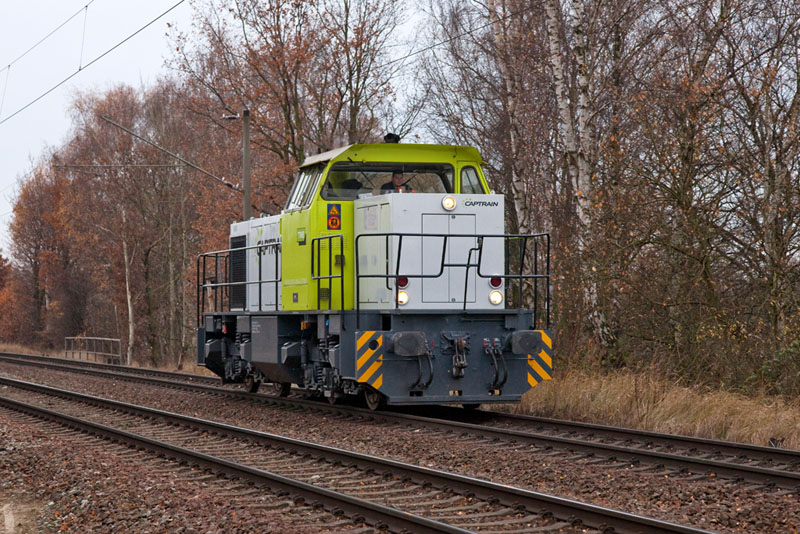 | Wieder eine neue Rangierdiesellok im Hamburger Hafen, die 274 108-6 der CAPTRAIN/TWE. Hamburg-Moorburg, 23. November 2012 |