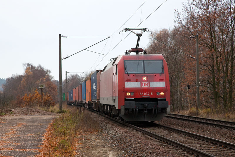 | In den Hafen fuhr dieser Containerzug mit der 152 034-5. Hamburg-Moorburg, 23. November 2012 |