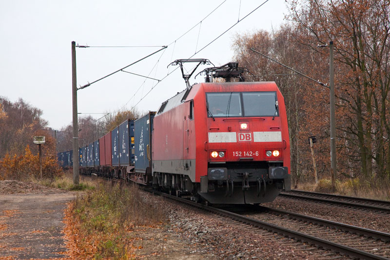 | Mit noch mehr Containern kam die 152 142-6. Hamburg-Moorburg, 23. November 2012 |