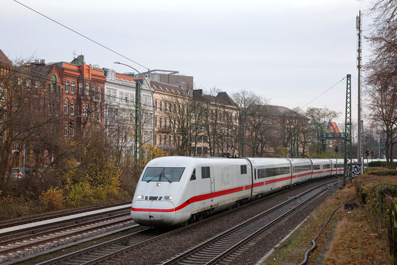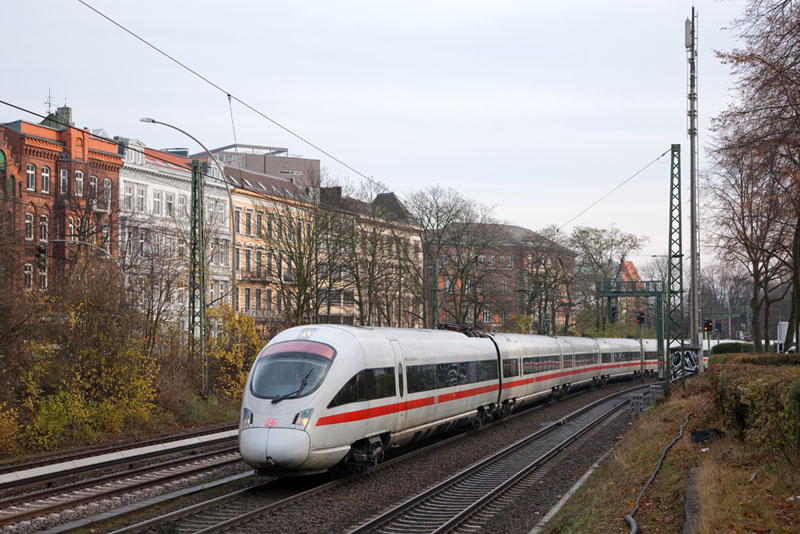 | Nach Hamburg-Altona fuhr der ICE-T 411 002/502 als ICE 1516 von Berlin. Hamburg-Rotherbaum, 23. November 2012 |