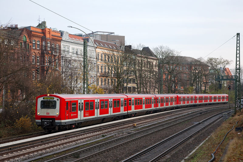 | Auf der S21 zur Elbgaustraße fuhren 472 037 und 472 059 als Vollzug. Hamburg-Rotherbaum, 23. November 2012 |