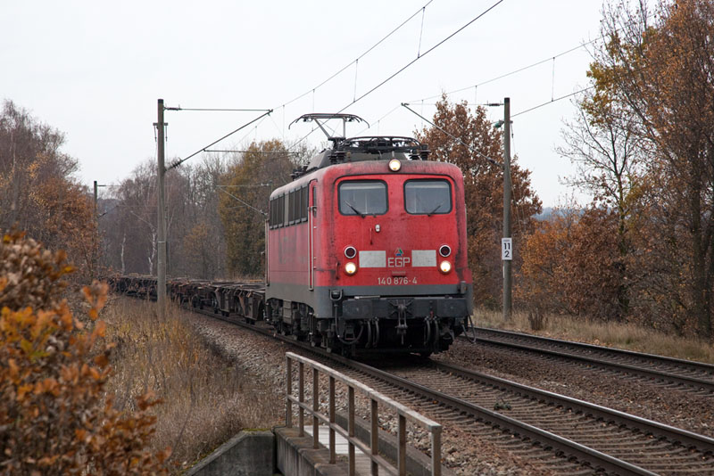 | Einen recht leeren Containerzug hatte die 140 876-4 der EGP zu ziehen. Hamburg-Moorburg, 23. November 2012 |
