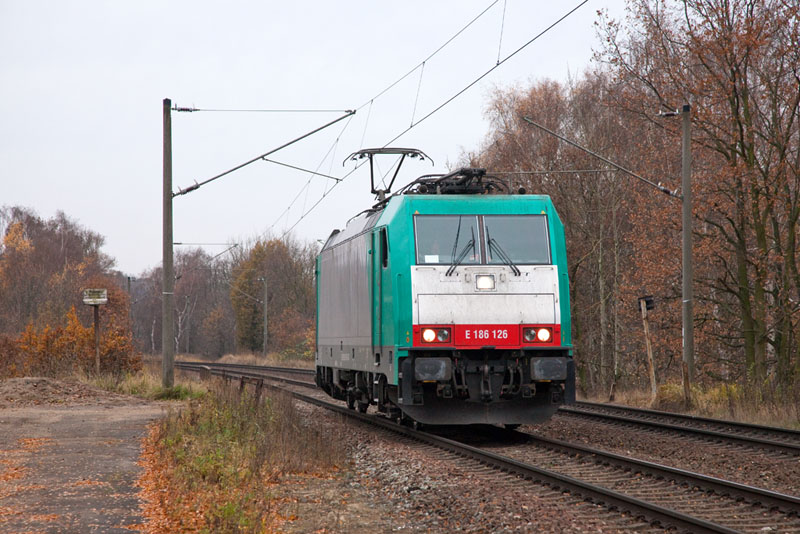 | Als Triebfahrzeugfahrt fuhr die E 186 126 der ITL in den Hafen. Hamburg-Moorburg, 23. November 2012 |
