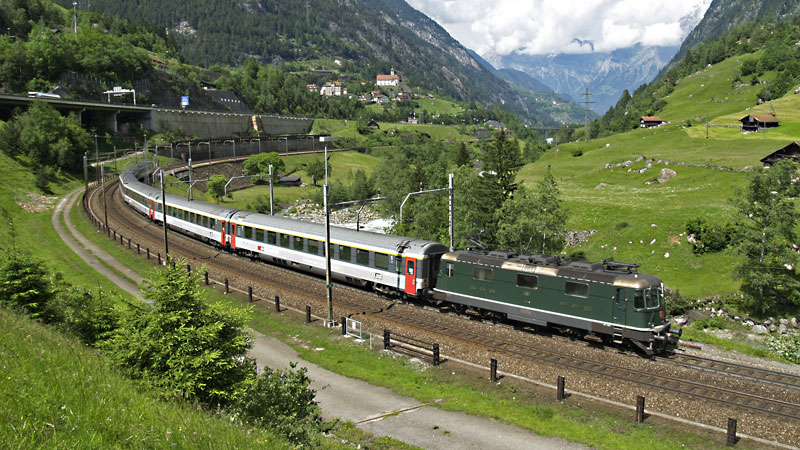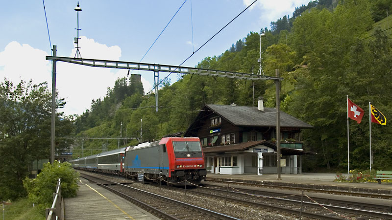 einem Cisalpino EC war diese Re 460 in Richtung Bellinzona unterwegs. Amsteg-Silenen | Gotthard Nordrampe, 8. Juni 2007 |