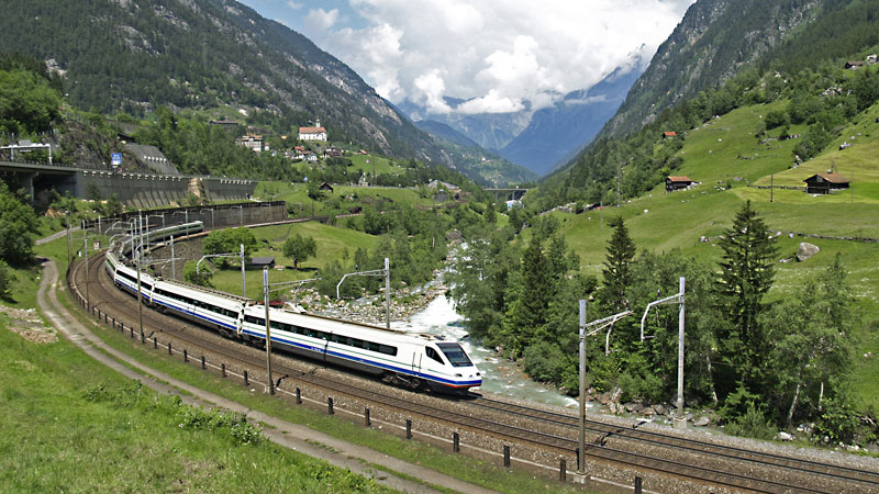 Cisalpino Neigezug der Baureihe ETR 470 auf dem Weg nach Italien. Wassen am Gotthard, 8. Juni 2007 |