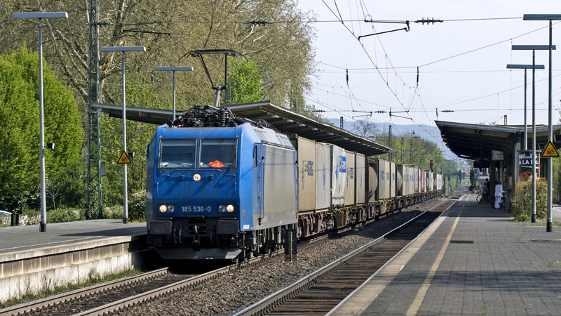 Die für die Crossrail fahrende 185 536-0 donnerte mit ihrem EAWLS Cargo-KLV-Zug durch den Bahnhof gen Norden.